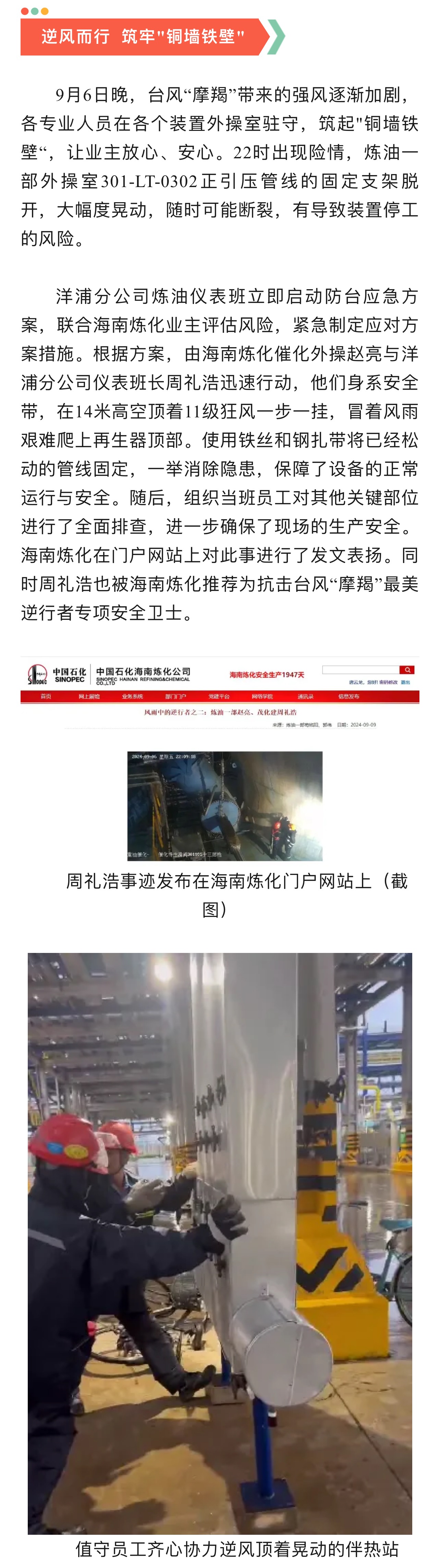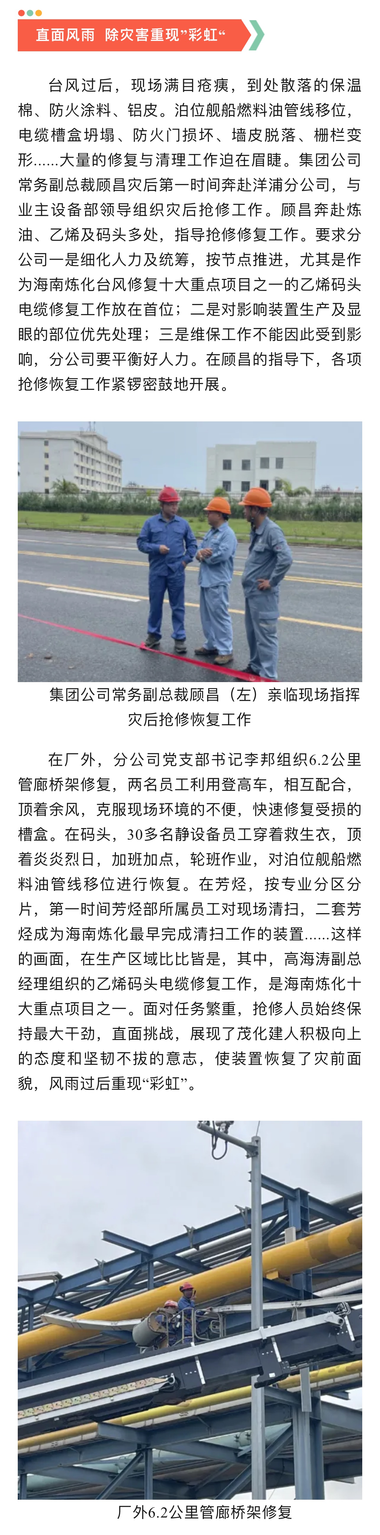 茂化建洋浦分公司抗擊超強(qiáng)臺(tái)風(fēng)"摩羯”獲業(yè)主高度表?yè)P(yáng)