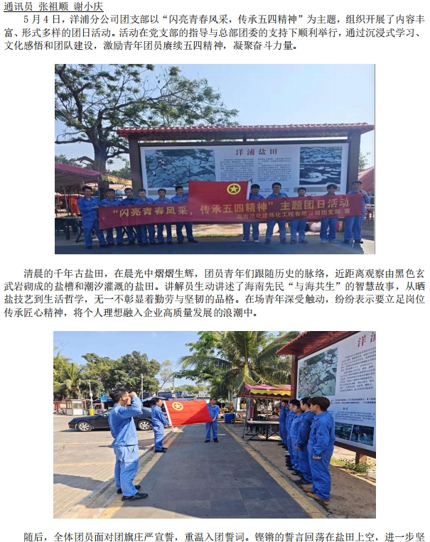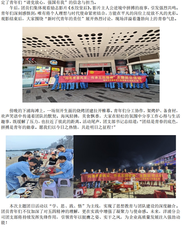 洋浦分公司團(tuán)支部開展“閃亮青春風(fēng)采,傳承五四精神”主題團(tuán)日活動(dòng)