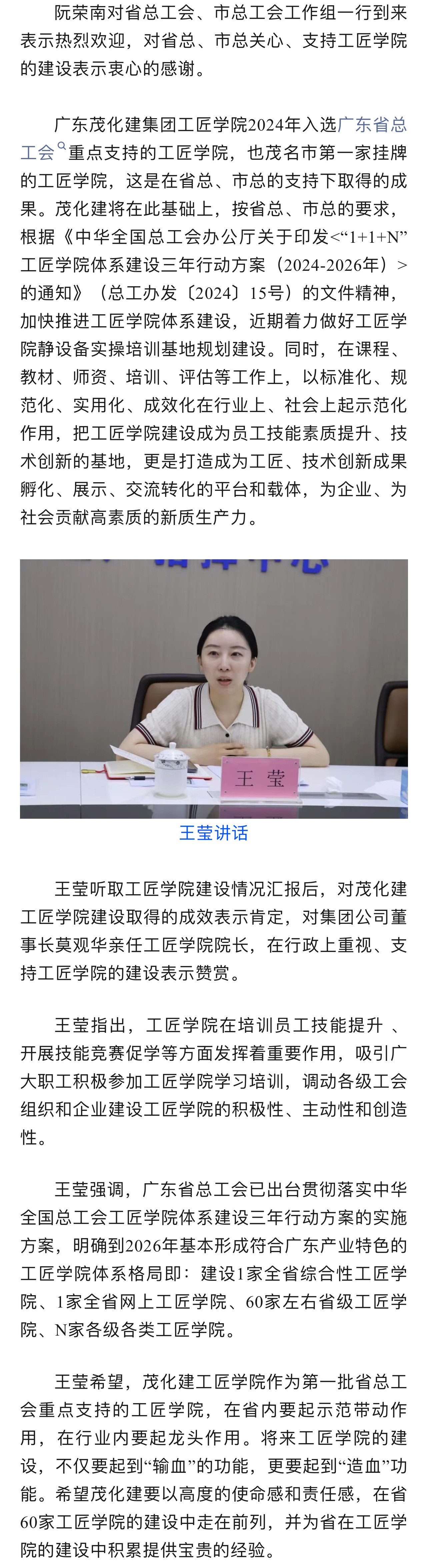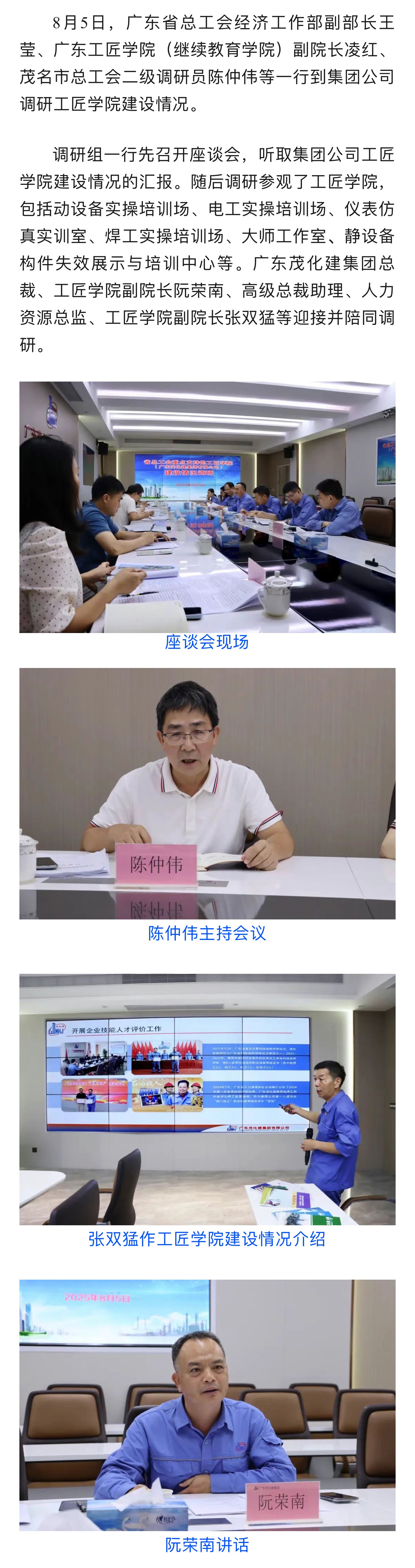 省總工會到廣東茂化建集團調研工匠學院建設情況