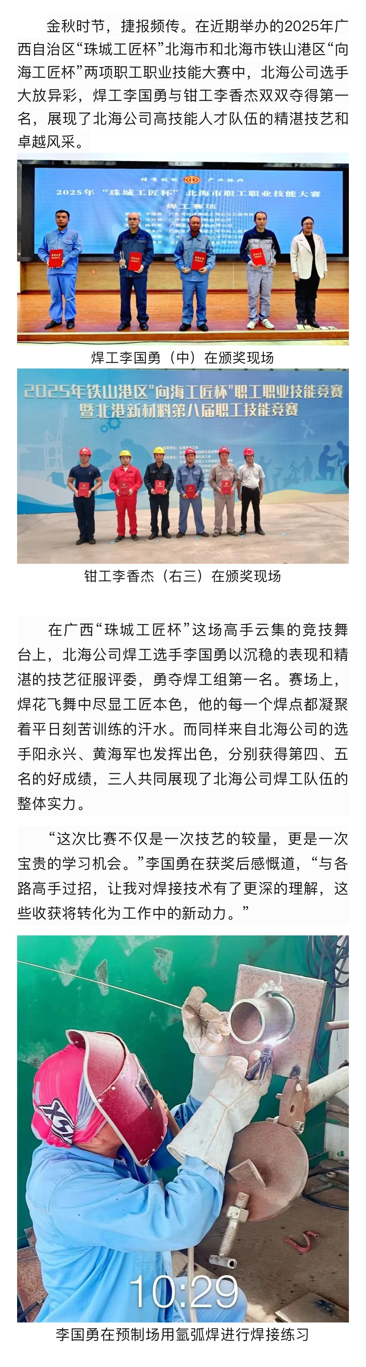 北海公司技能賽場(chǎng)捷報(bào)頻傳,勇奪焊工、鉗工雙項(xiàng)桂冠