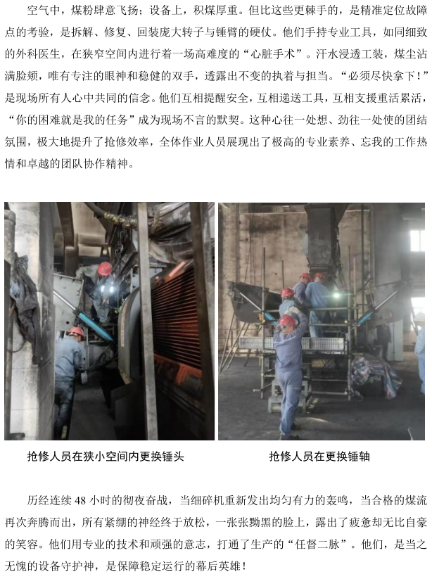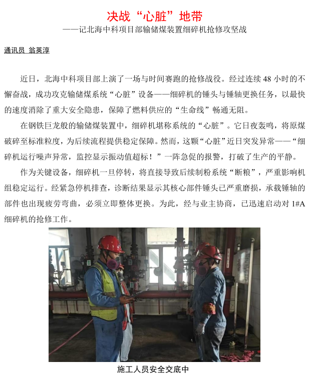 北海中科項目部輸儲煤裝置細(xì)碎機(jī)搶修攻堅戰(zhàn)